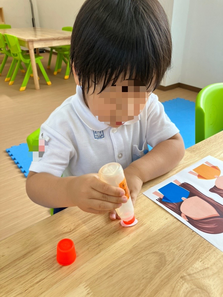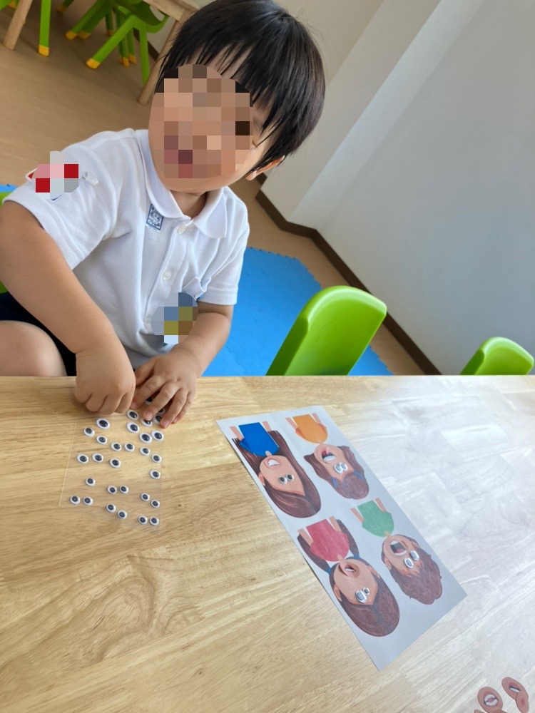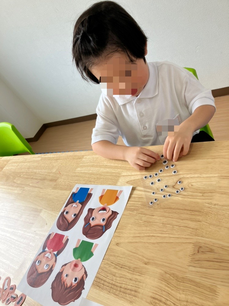今日の机上活動では、のりや目ん玉シールを使って【顔】を作っています^^
