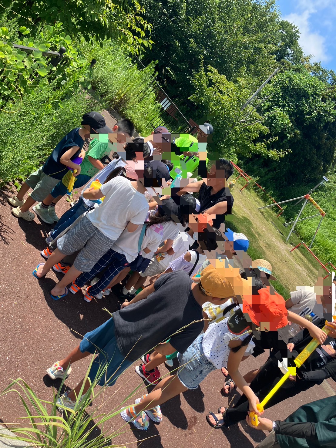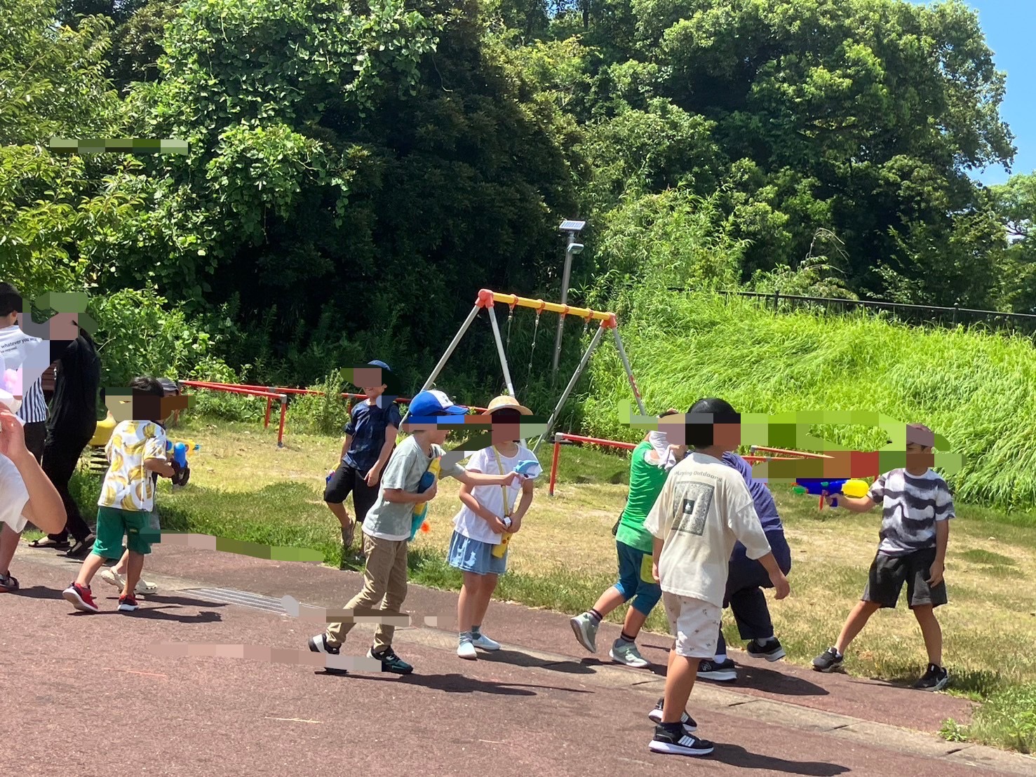 予定していた砂浜ゾーンは暑かったので木陰のある原っぱで蝉の声を浴びながら、予定通り水鉄砲合戦を行いました🔫