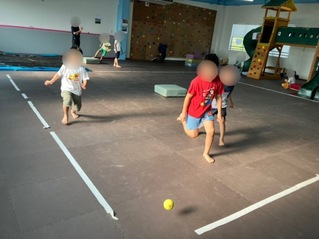 打つ人と守る人に分かれて試合形式で行い、ボールを打つ感覚やボールを追いかける・取る・投げる等の感覚を味わいました❗️