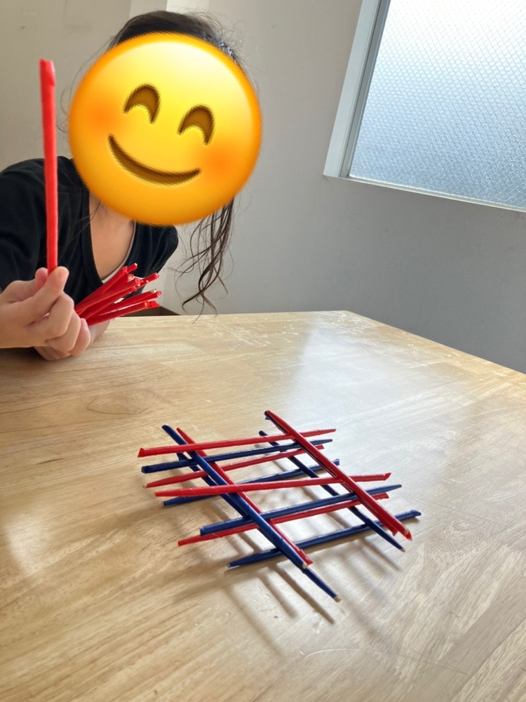 割り箸タワーもお友達と仲良く、交互に乗せて上手に積み上げることができています👌