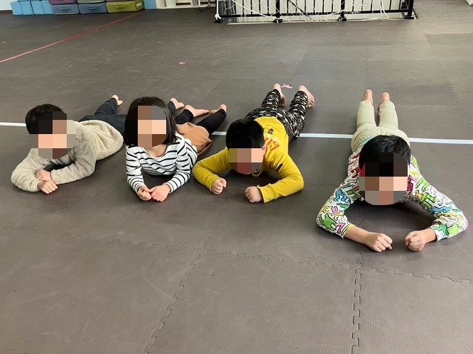 ストレッチでは、「学校の体育の時間にする!!」と自信満々で取り組む子ども達でした😊