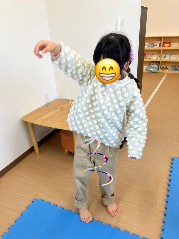 紐を着けてみるとクルクルと回って踊っているようにも見え、大興奮の子どもたちでした🌀✨