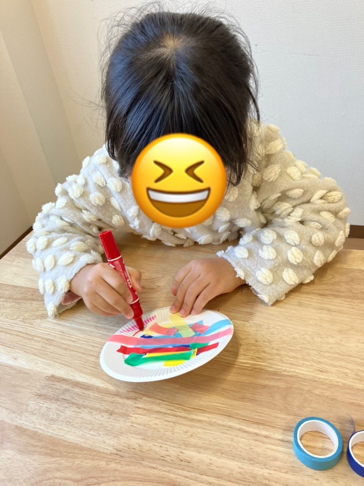 紙テープをちぎる工程では、指先の力や巧緻性を高める事が出来ましたよ🙌🏻