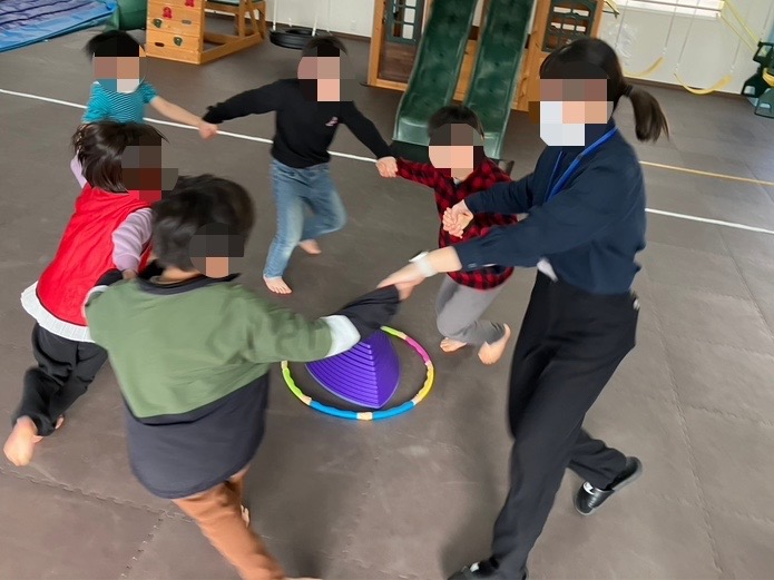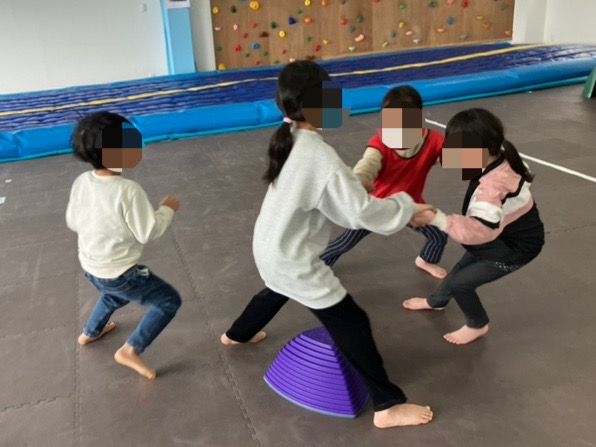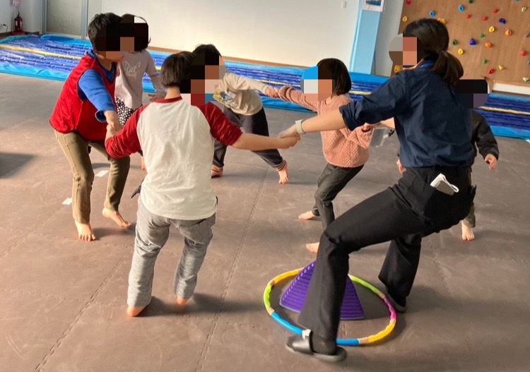 今日は「運動療育の日」ということで、モモ上げや手繋ぎ鬼ごっこに取り組みました💪