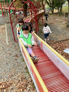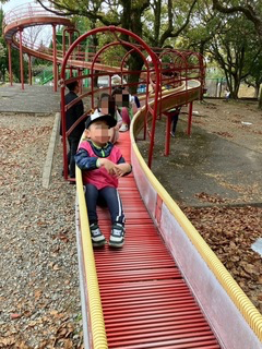 凹凸のある滑り台も人気で、みんなで手を繋いで滑りました✨