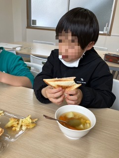 3年生以上はクッキングという事でホットサンドと野菜スープ作りを行いました♪