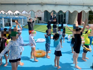 移動中もプールでもマナーを守って楽しく活動しています👍中でもウォータースライダーは人気で、1人で何回も滑る児童もいました🛝