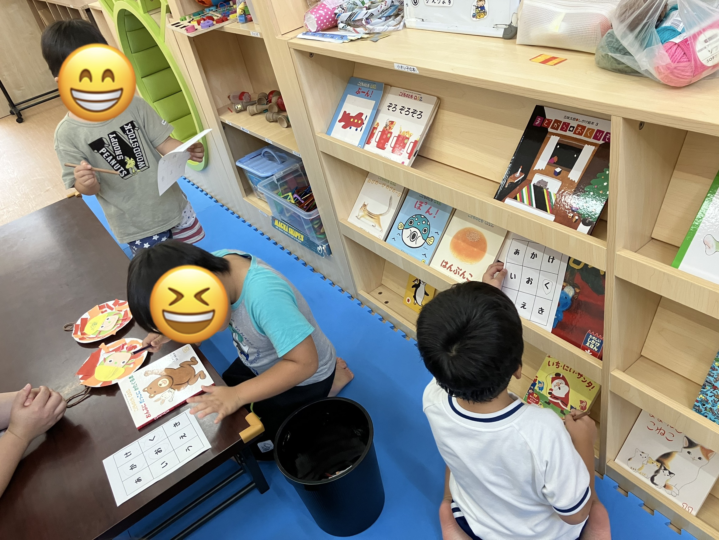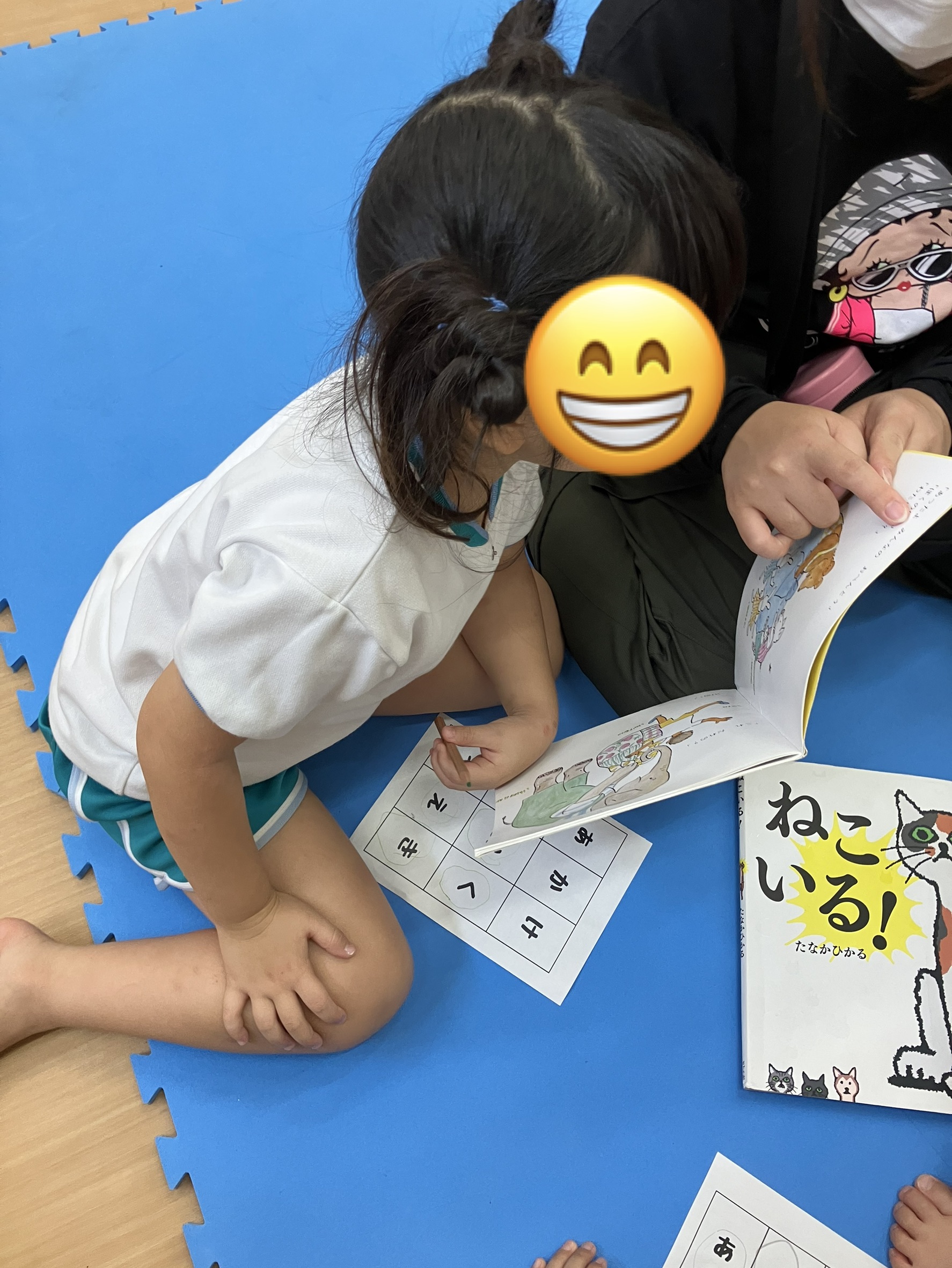部屋の中をよく観察して掲示物や絵本から9つのひらがなを探し出す事が出来ました👏🏻