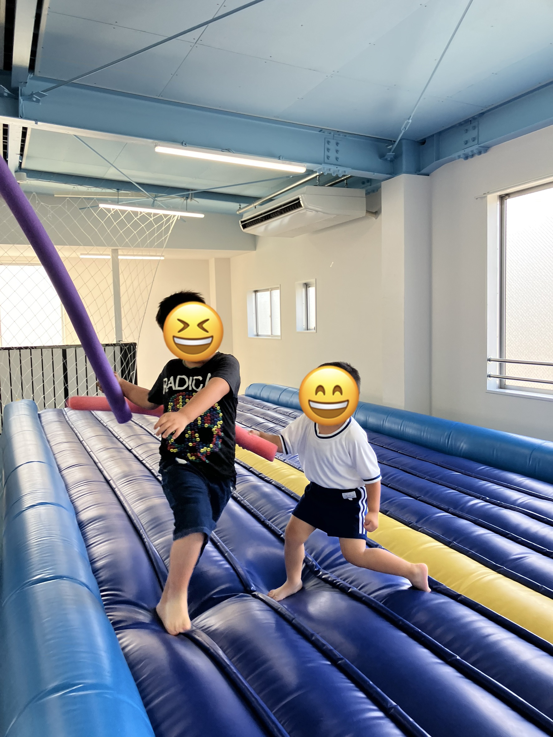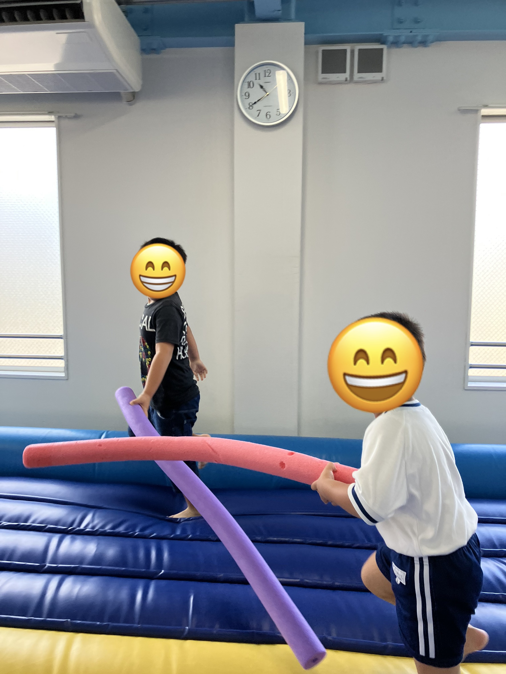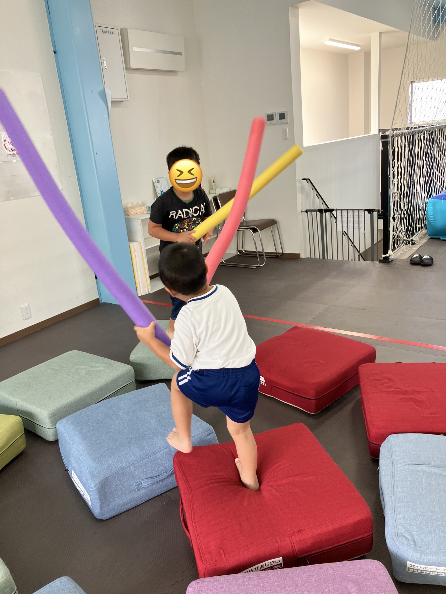 児童発達支援でスポンジ製の棒を使った「チャンバラ遊び」を行いました。
