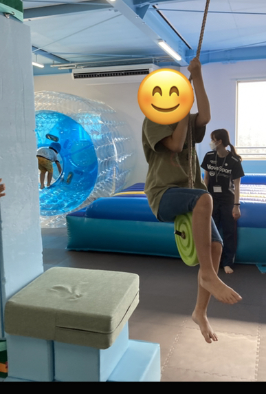 階段を登って、ロープをしっかりと握り、思い切って飛び乗るだけ!