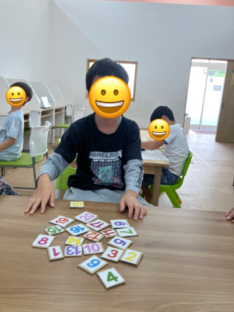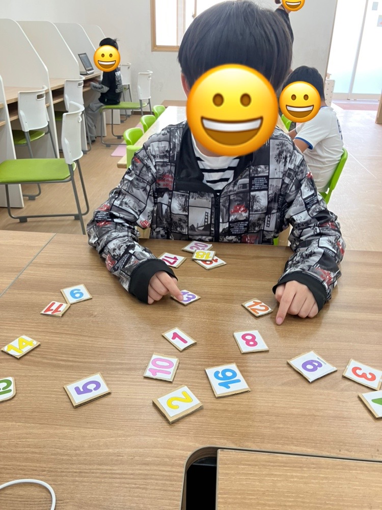 目の運動+手の運動で数字カードを使ってタイムアタックを行いました❗️