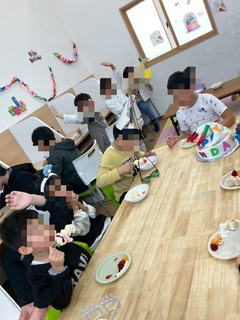 お誕生日のお友達に歌を歌ってお祝いしたり、作ったフルーツロールを食べたりして過ごしました☺️
