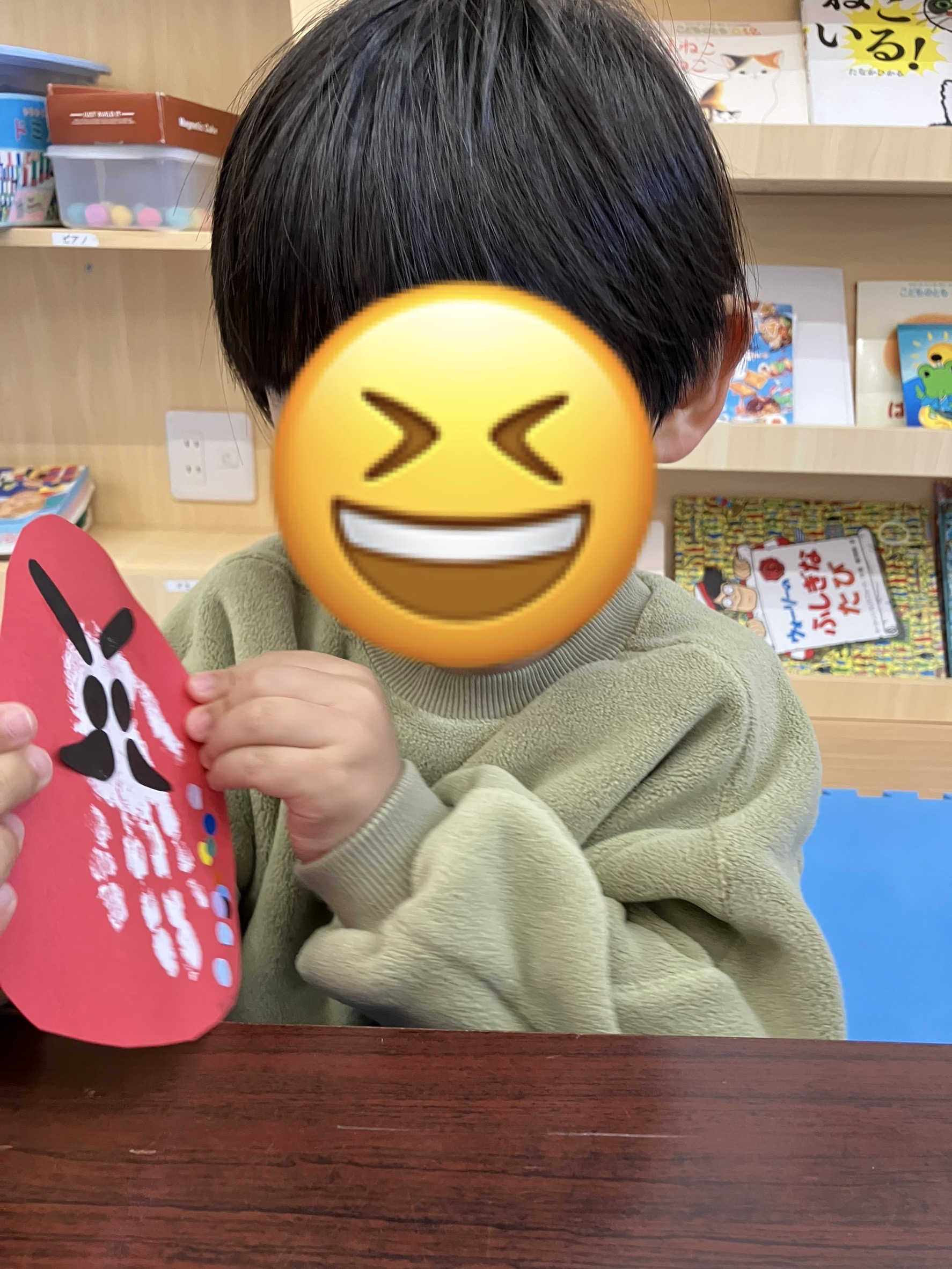 その後はシール貼りにも挑戦し、目や鼻を貼って、とても可愛らしいダルマさんが完成しました🎵