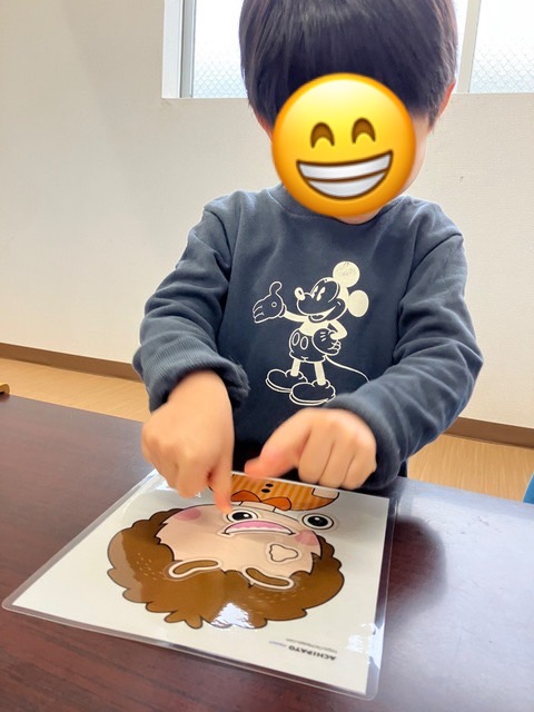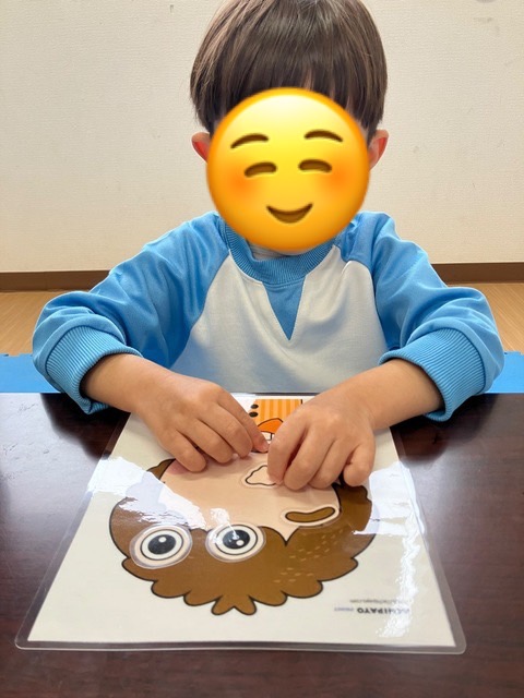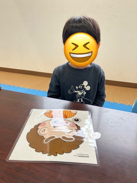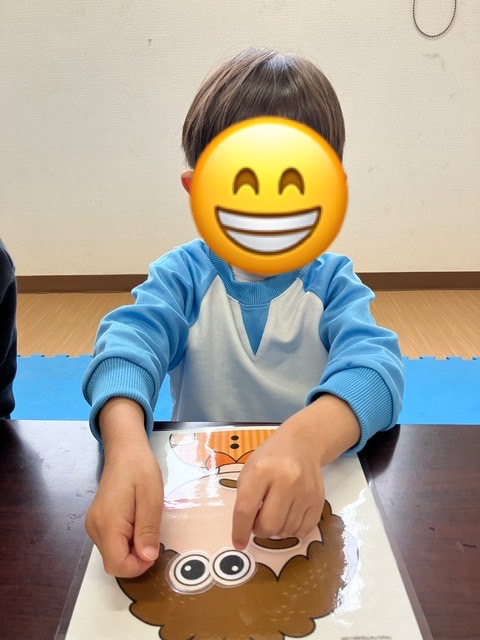 本日の児童発達支援では、男の子のイラストで福笑いを行っております👀