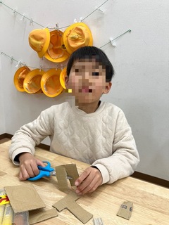 少ない段ボールで作ることができ、わかりやすいハサミの工程を担っていただきました✂️