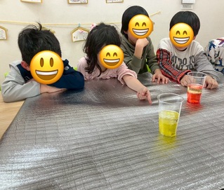 重さの違いや炭酸が水に溶けて泡が弾ける様子を見て「すご〜い😳」と目を丸くしながら現象の変化を楽しんでいました😊