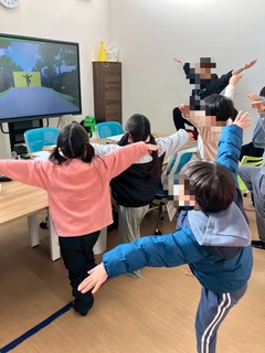 本日はリズムでGoという事で「いぬ」「りす」「とり」等の響きが似ている言葉をテンポ良く言うリズムゲームやマインクラフト風の壁を避けたり、飛んだり、しゃがんだり等の体の動きを取り入れたリズムゲームに取り組みました🤖