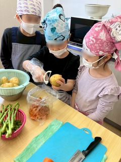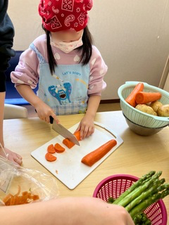子ども達には、野菜を洗ったり、皮を剥いたり、切ったりなど色々な作業をしてもらいましたが、野菜をみながら「これ食べれ〜ん💦」「小さくしたら食べれるかも、、、」など色々な声が聞かれましたが、実際に食べる時には「めっちゃ美味しい!!」「おかわりある?!?!」と、全員が完食することができています😋👏🏻