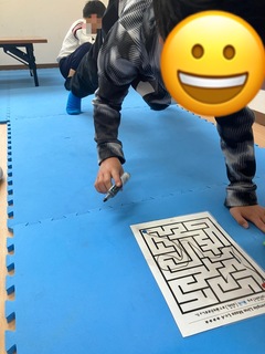 本日は両手動作を含めた指先の巧緻性、体幹、腕の力を養うことを目的にプランク迷路と空中迷路を行いました🖐️