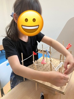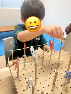 手を持ち替えたり、片手は迷路を通しつつ、もう片方で障害物の洗濯ばさみを取るなど違う動きも頑張られておりました☺️