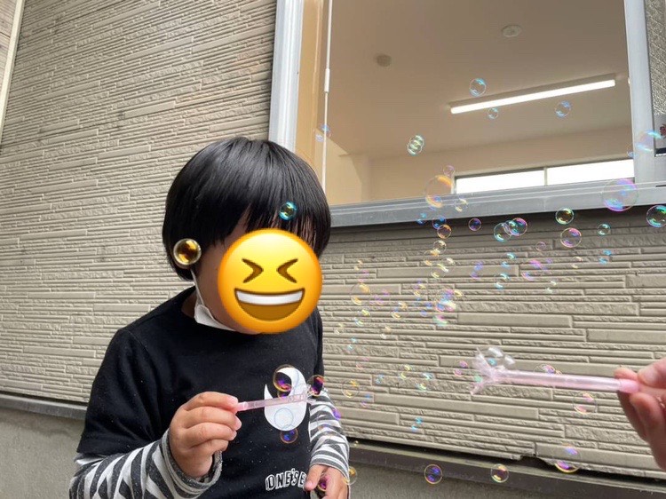 ようやくシャボン玉が出ると大喜び
