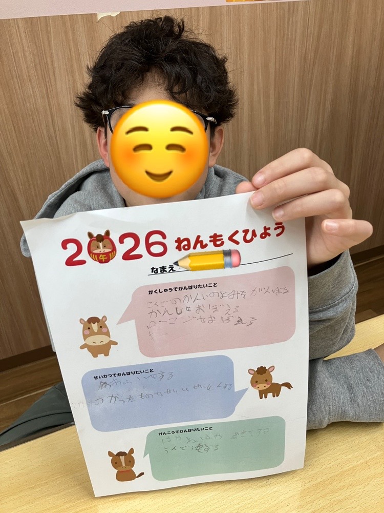本日、3年生以上のお友達は『2026年の目標』を立てました🐎