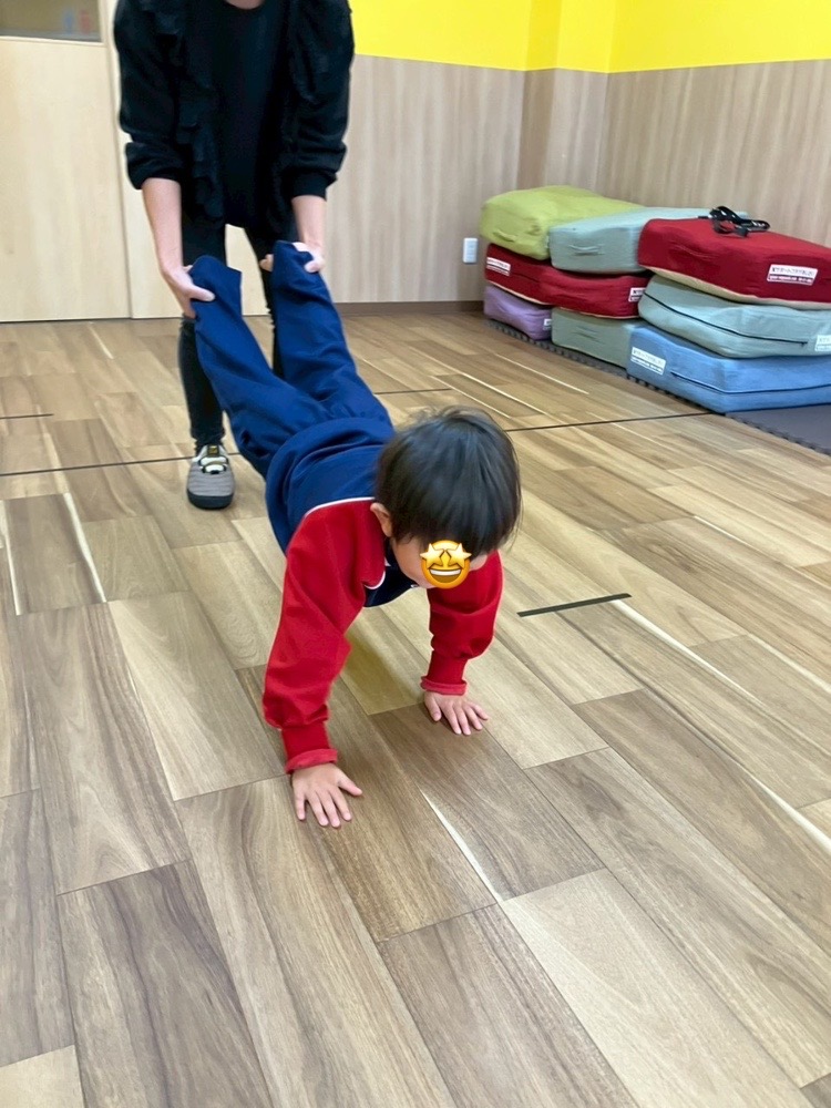 いよいよ手押し車本番!足首を持ってもらい前進~👣
