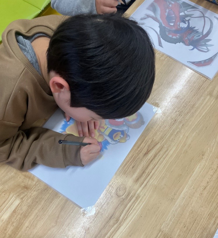 好きな課題を選び、台紙の上からトレーシングペーパーを被せてなぞりました!