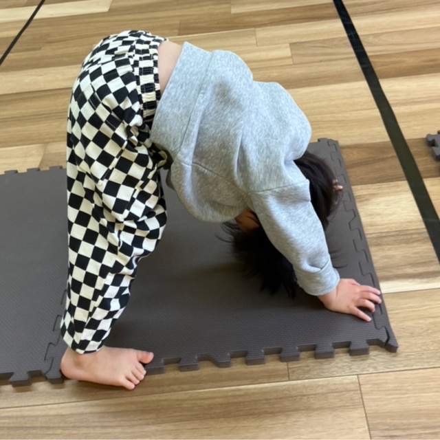 はじめは、あぐらのポーズが難しかったお友達も、足の組み方を伝えることで上手に組むことができていました✨