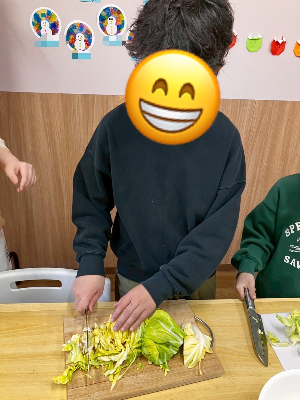 本日3年生以上のお友だちはクッキングで「餃子作り」を行いました!🥟