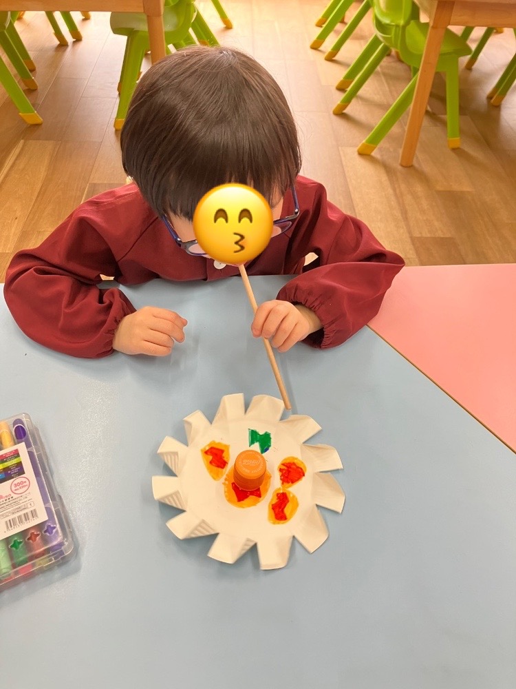 また紙皿コマを作り、ストローで吹いてクルクルと回す遊びも行いました♪