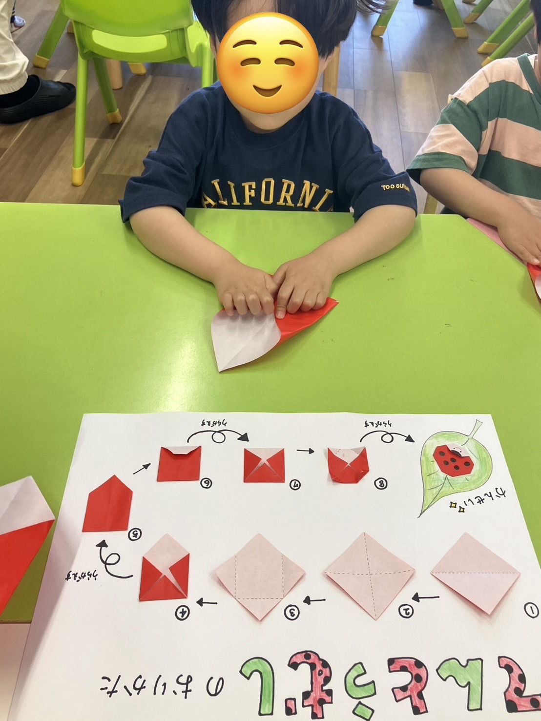 年中以上のお友だちはてんとう虫を折りました🐞