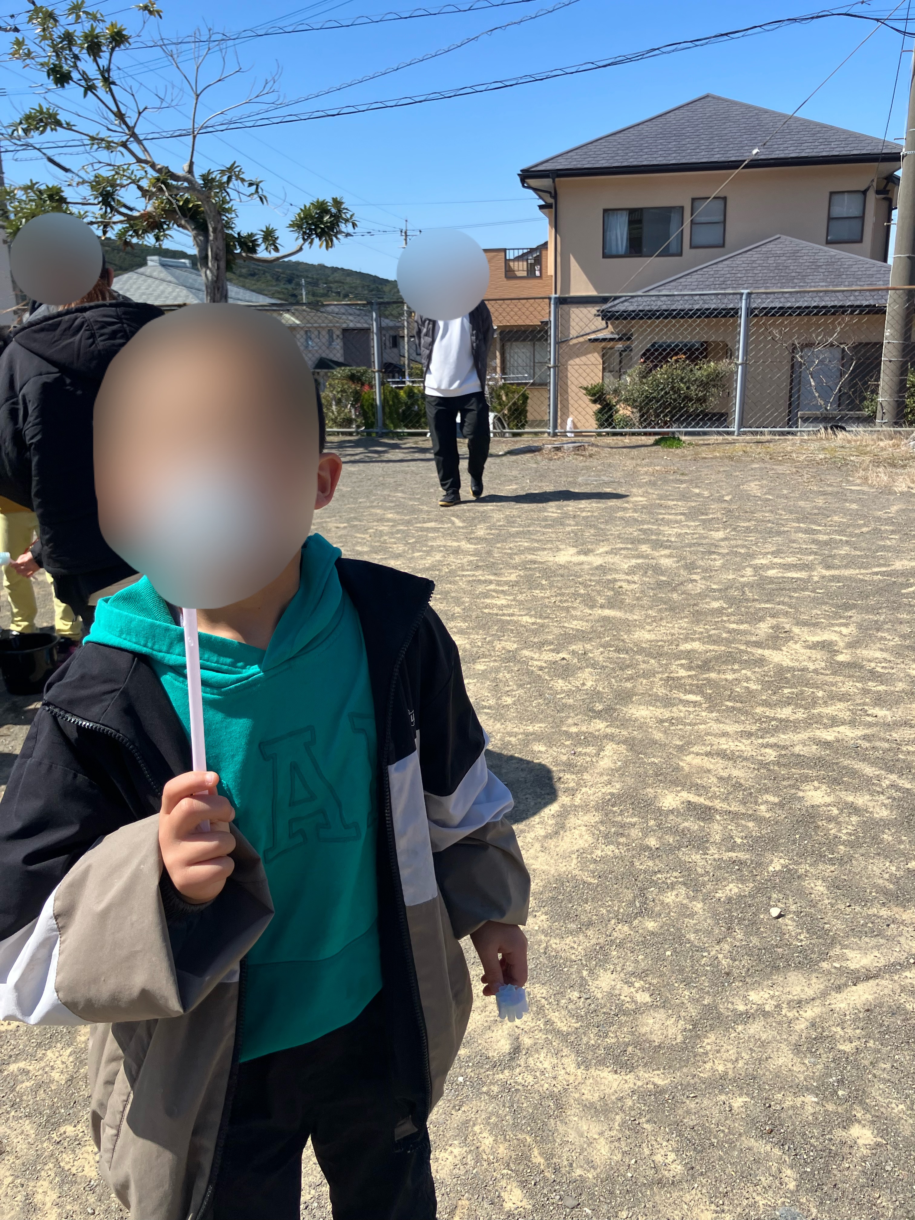 シャボン玉の液が出来上がったあとは公園で飛ばしに行きました!!