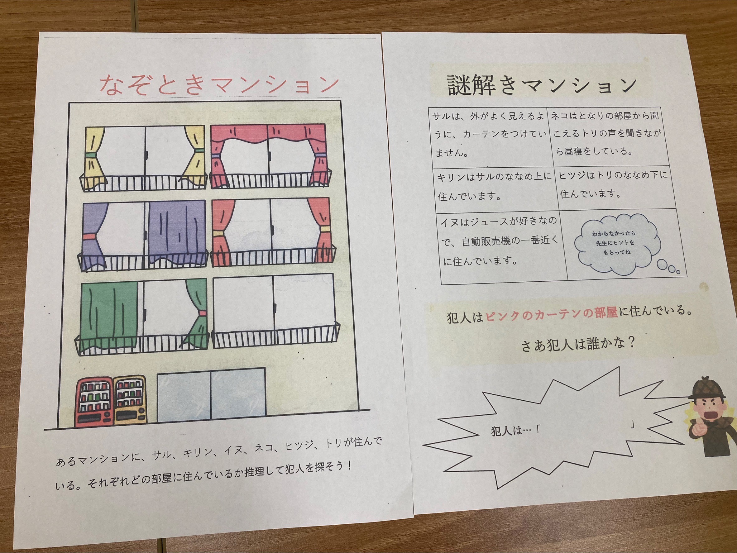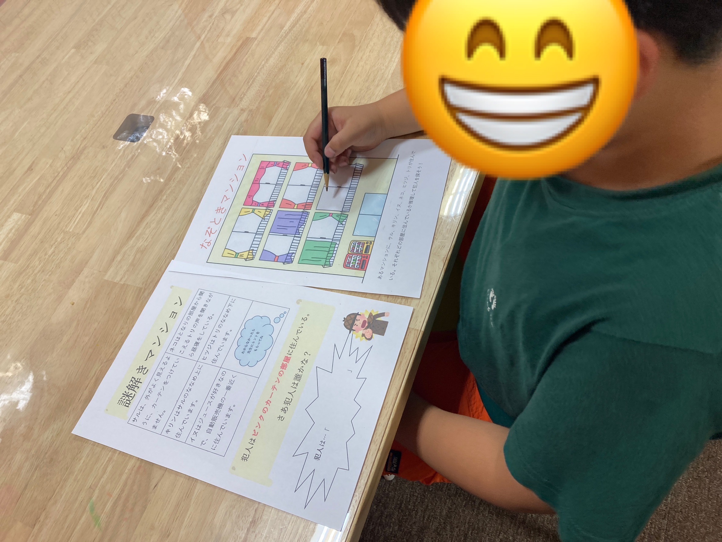 謎解きプリントで文章読解の練習をしてもらいました。