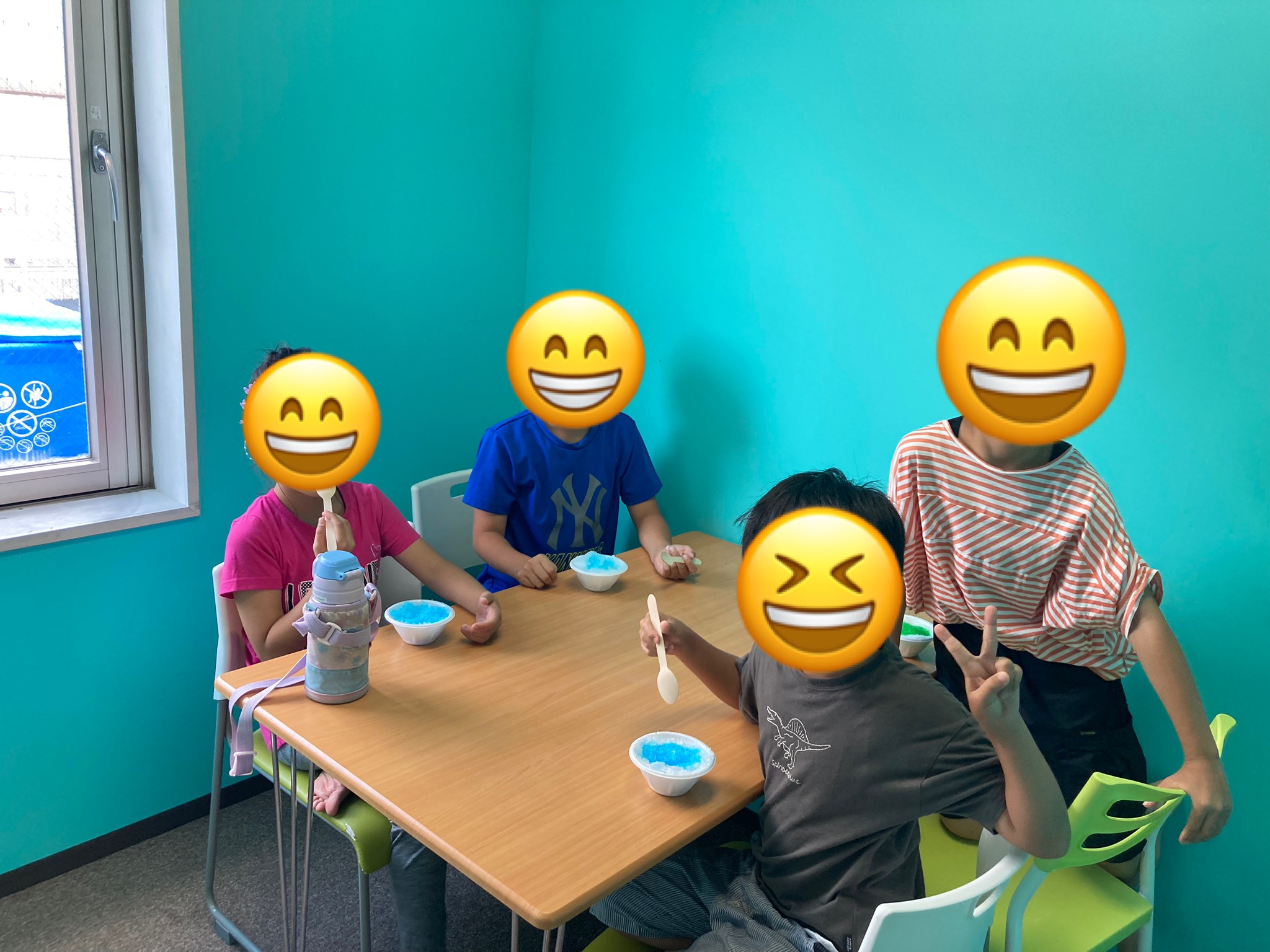 午後のかき氷では、おかわりをする児童も多くシロップ色にベロを染めて「先生見て〜」とベーッと見せてくれました😅