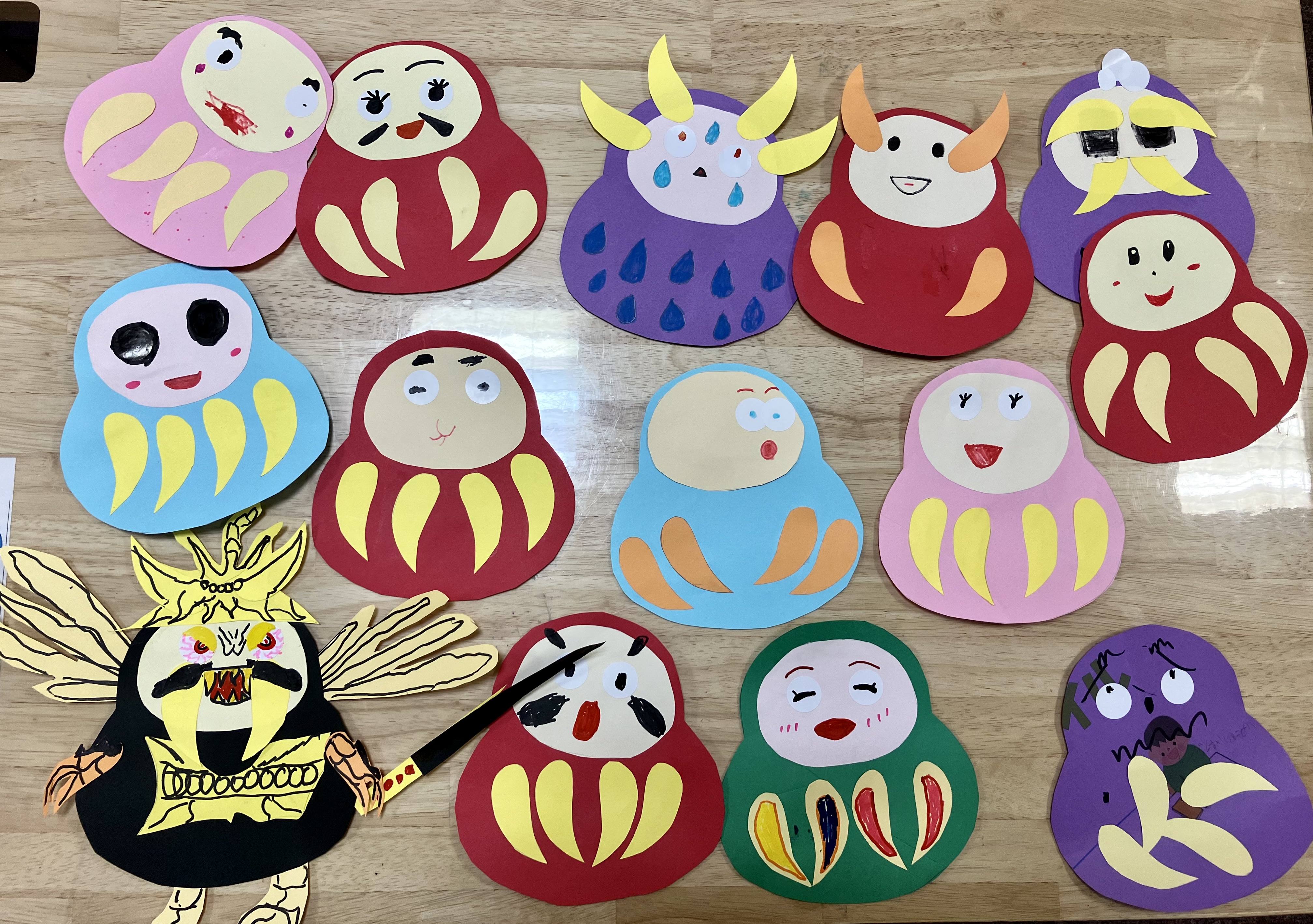 好きな色のダルマを選択し、指先を動かしながら想像を膨らませ作製しました。
