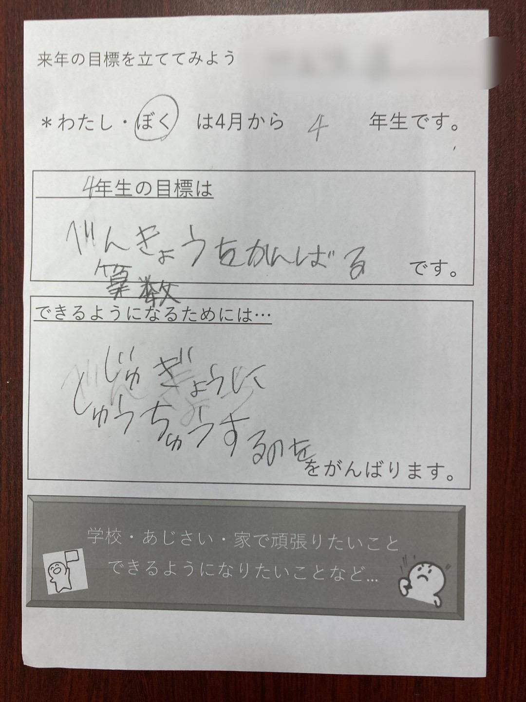 学校やあじさい、家などで、頑張りたいこと、