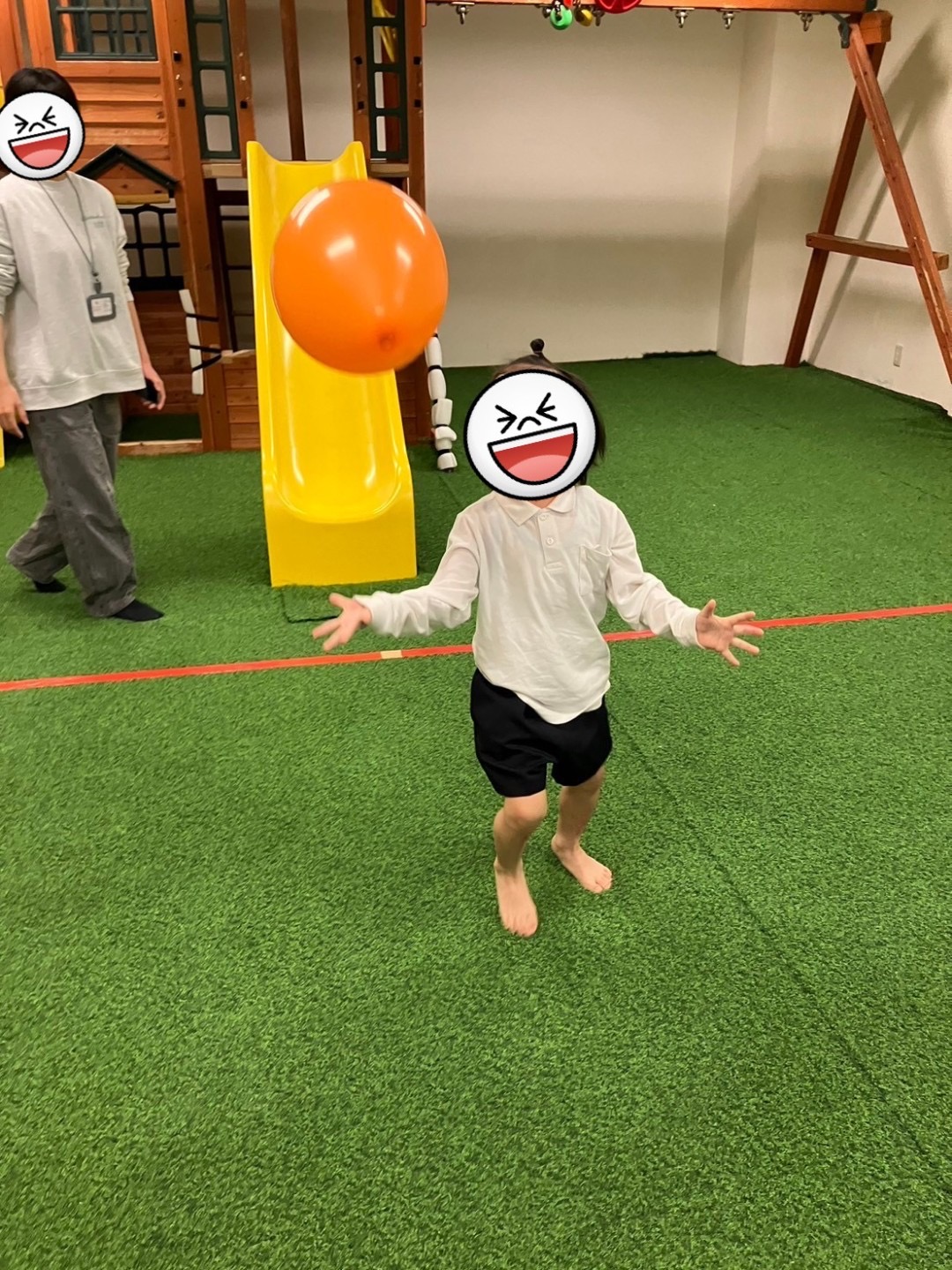 はじめは、活動内容が難しいと感じる子どもたちもいましたが、どうしたら風船を落とさずに運べるか自分なりに考え試しながら取り組むことができていました♪