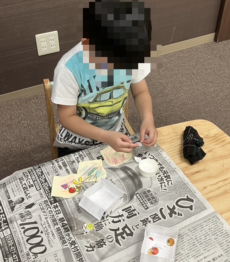 色鉛筆を色をぬったり、ノリで貼ったりしてたくさん手先を使いました