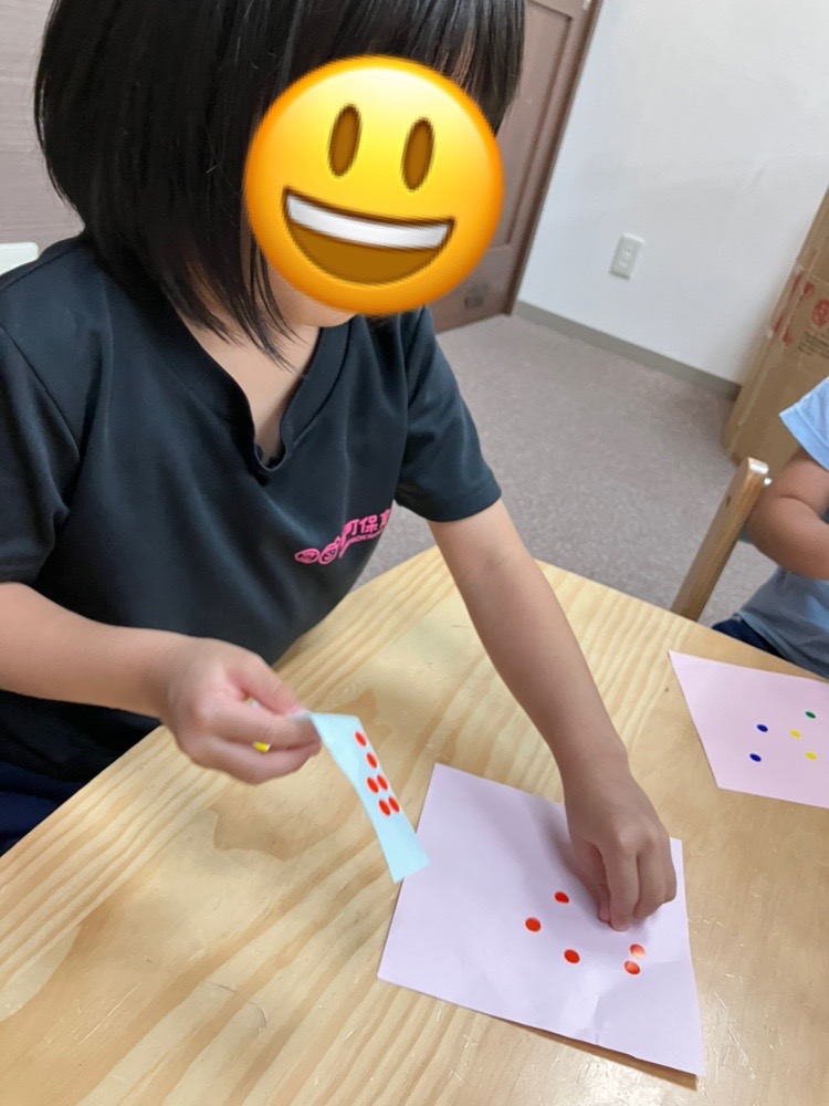 ①色紙を選び、チャコチップとなるシールをペタペタと貼る