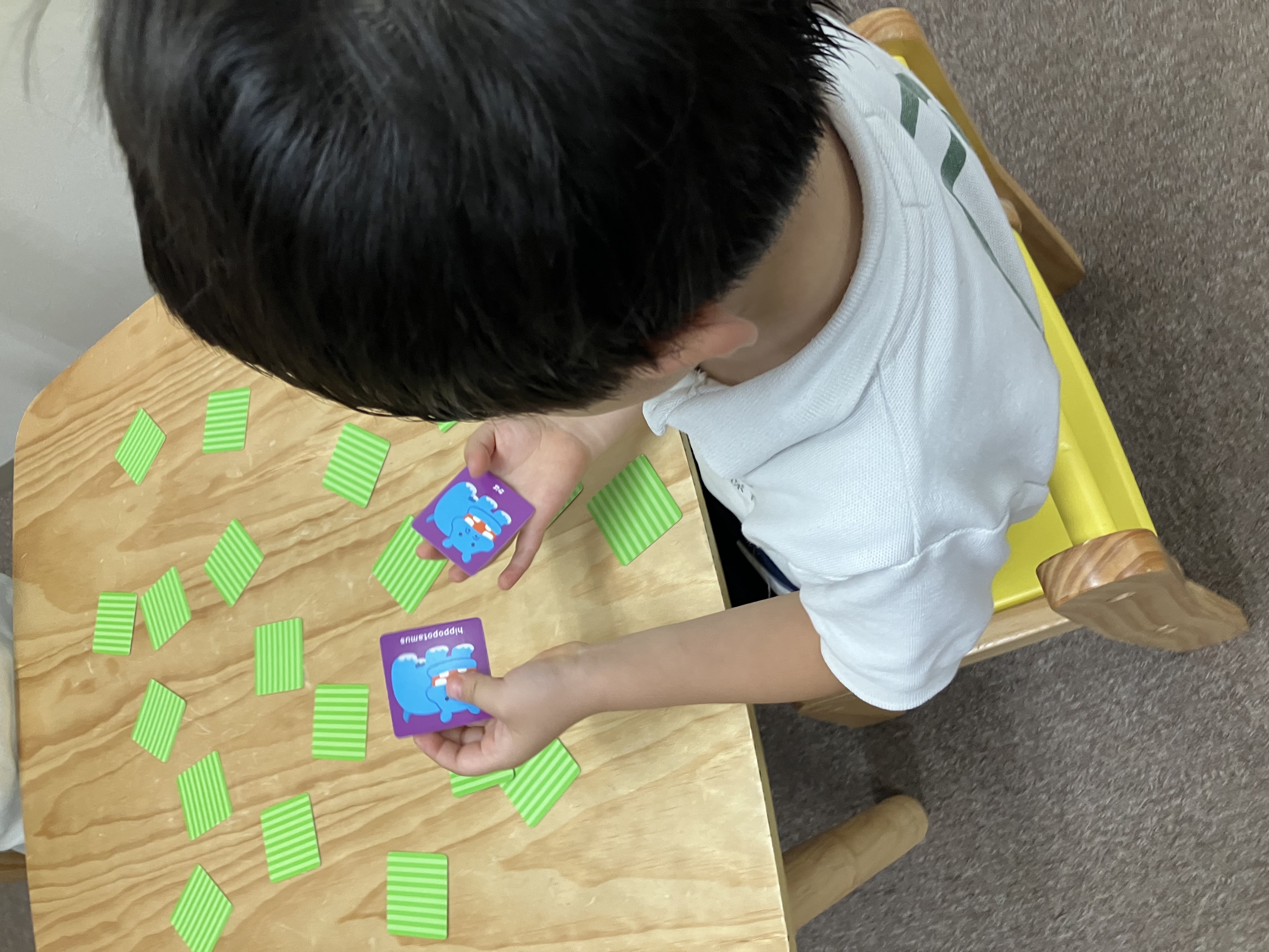 みんな何度かめくる内にどんどん場所を覚えていき、カードを揃える事が出来ていました。