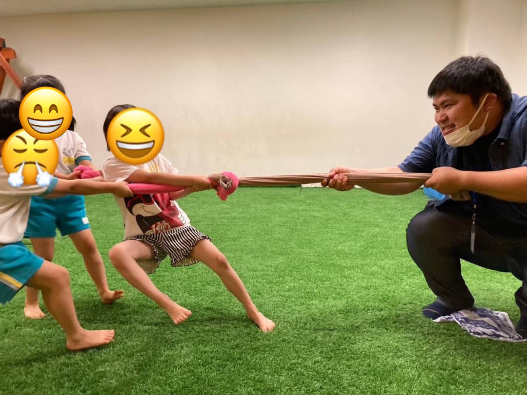 その後はお友達と一緒に職員に負けないように引いていて、お友達との適切な距離感や協力をし合うよう注意しながら見ていましたが、