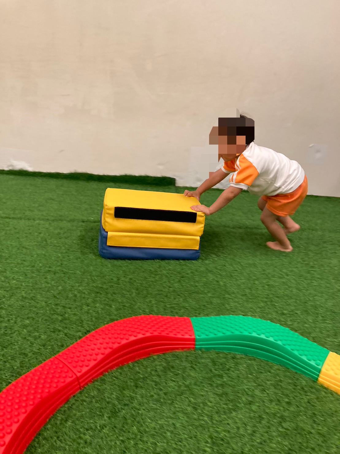 内容はクッションの跳び箱を押して走り、決められた場所をぐるっとまわって次の人に交代というゲームです🔥