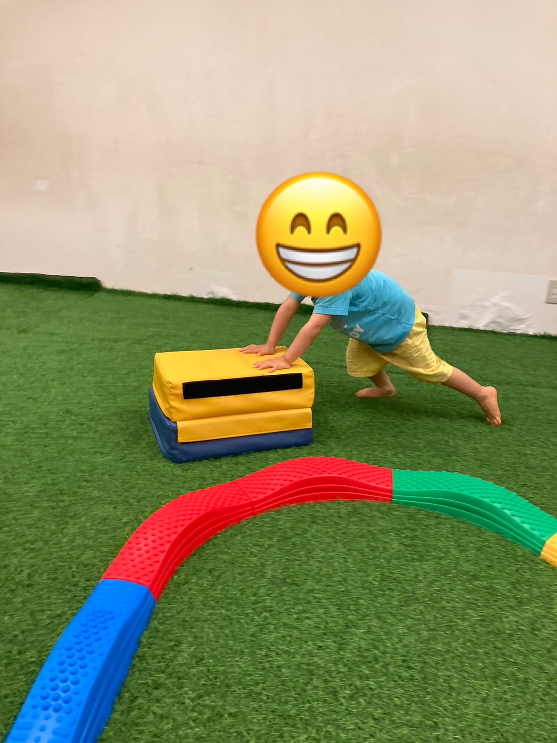 このように、手で体重を支える様な遊びは、肩甲骨まわりや首、体幹の活動性を高め、これらの部位が安定すると手先や眼球、舌が使いやすくなるとされてます😊