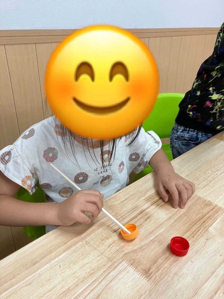 本日は「ペットボトルキャップすくい」を行いました! 割り箸を使ってキャップをすくい上げる活動内容ですが、意外と難しく何度も挑戦する姿も見られました♪ コツを掴むとすぐにすくい上げることができるようになり、みんな楽しんでくれた様子でした✨✨