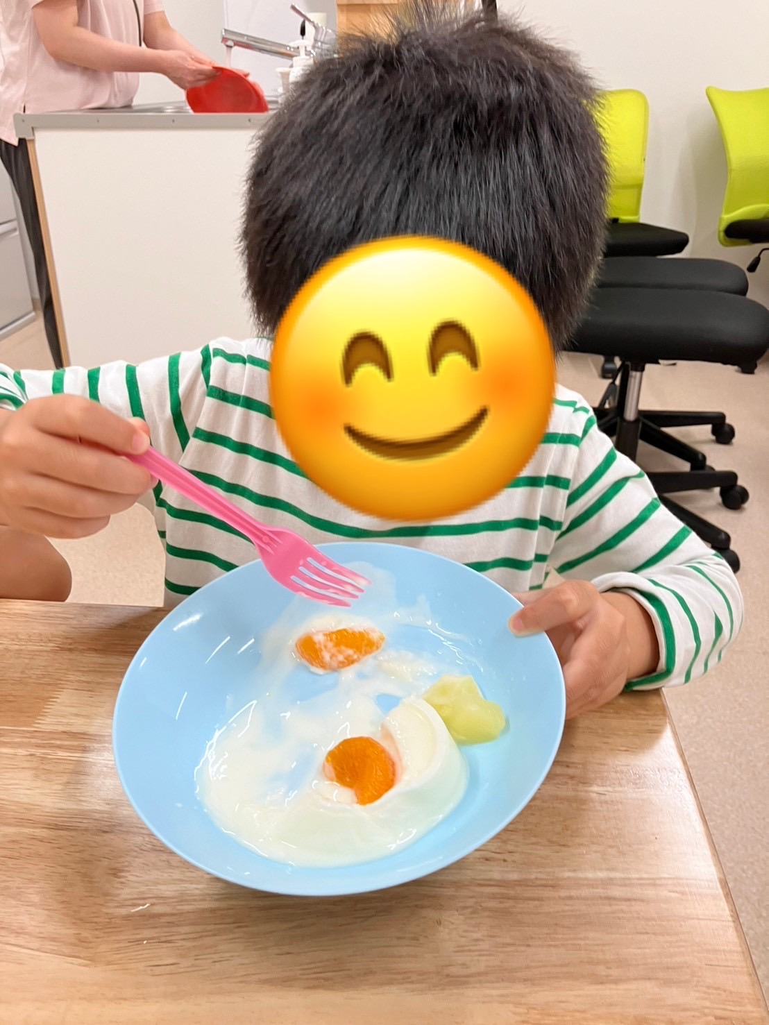 朝からヨーグルトに砂糖を入れて混ぜ、自分のカップに入れる作業を行いました☕️