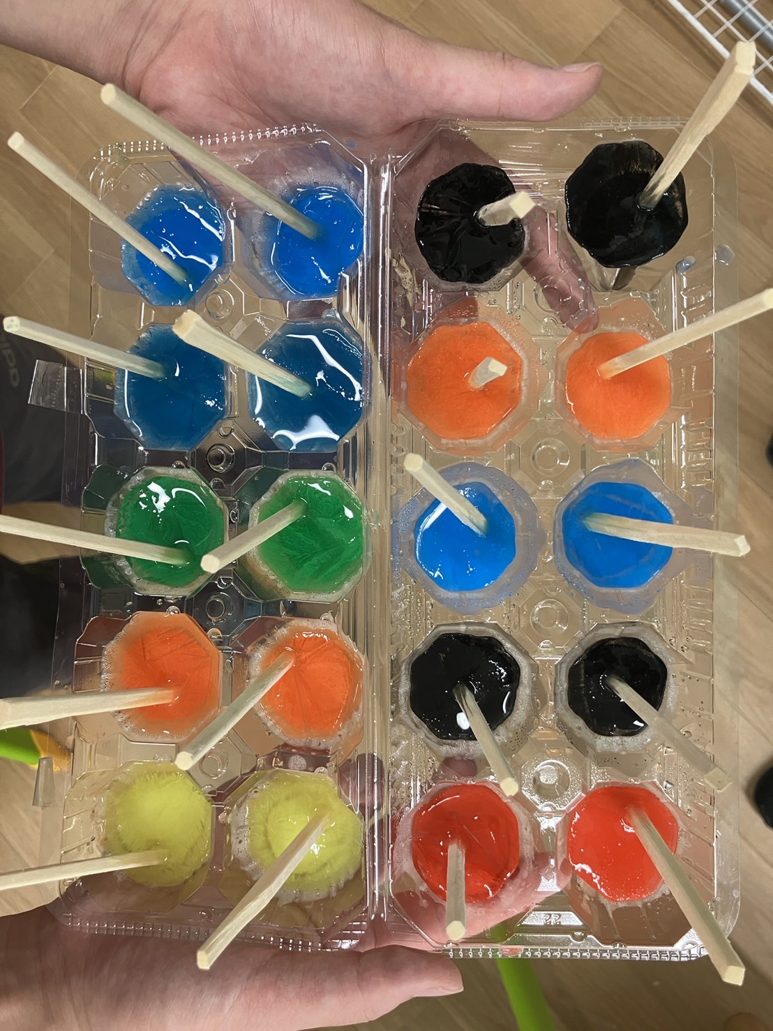 氷から水にとけ、色がつく楽しさや初めて使う氷のペンということでとても不思議そうに楽しく取り組めています😄