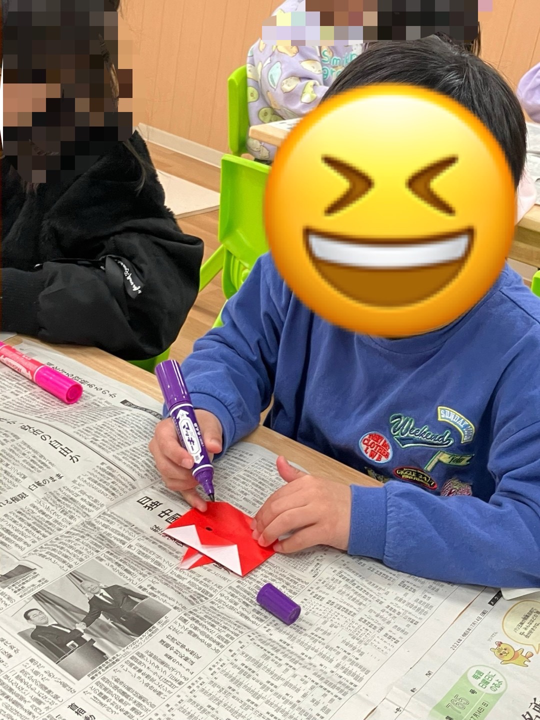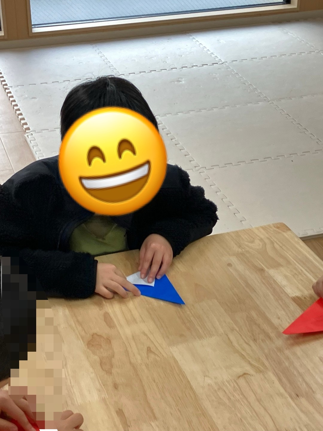 職員の説明をよく聞き、指先を使ってしっかりと角を合わせたり、折り目を作ったりすることができていまた✨