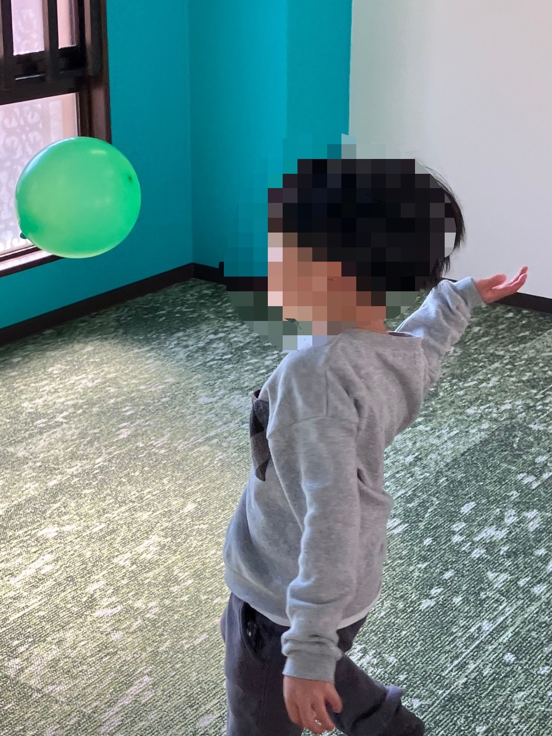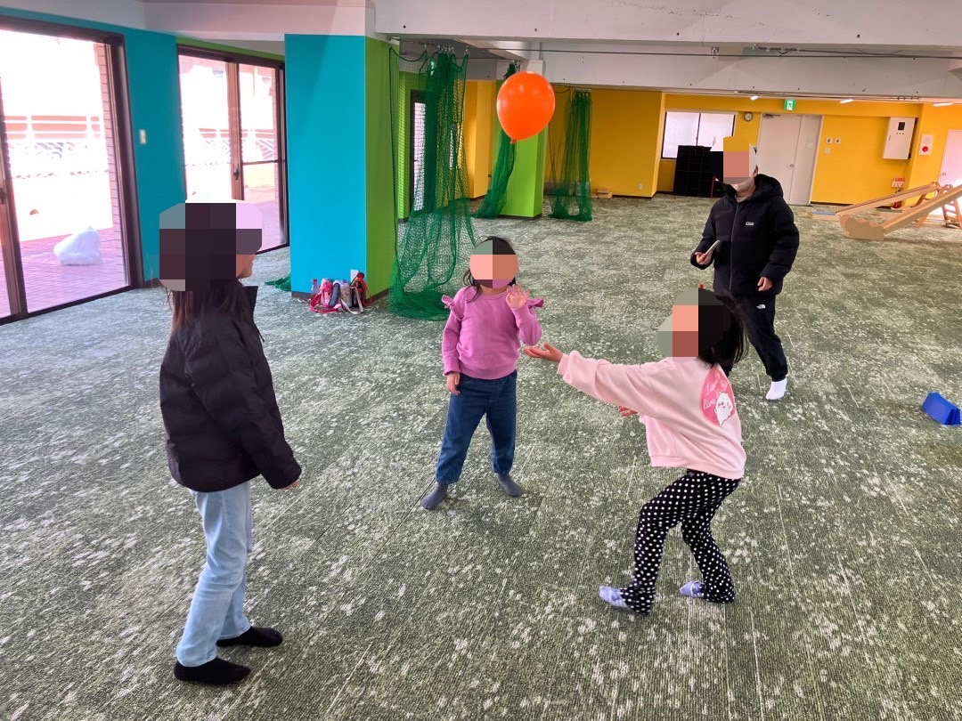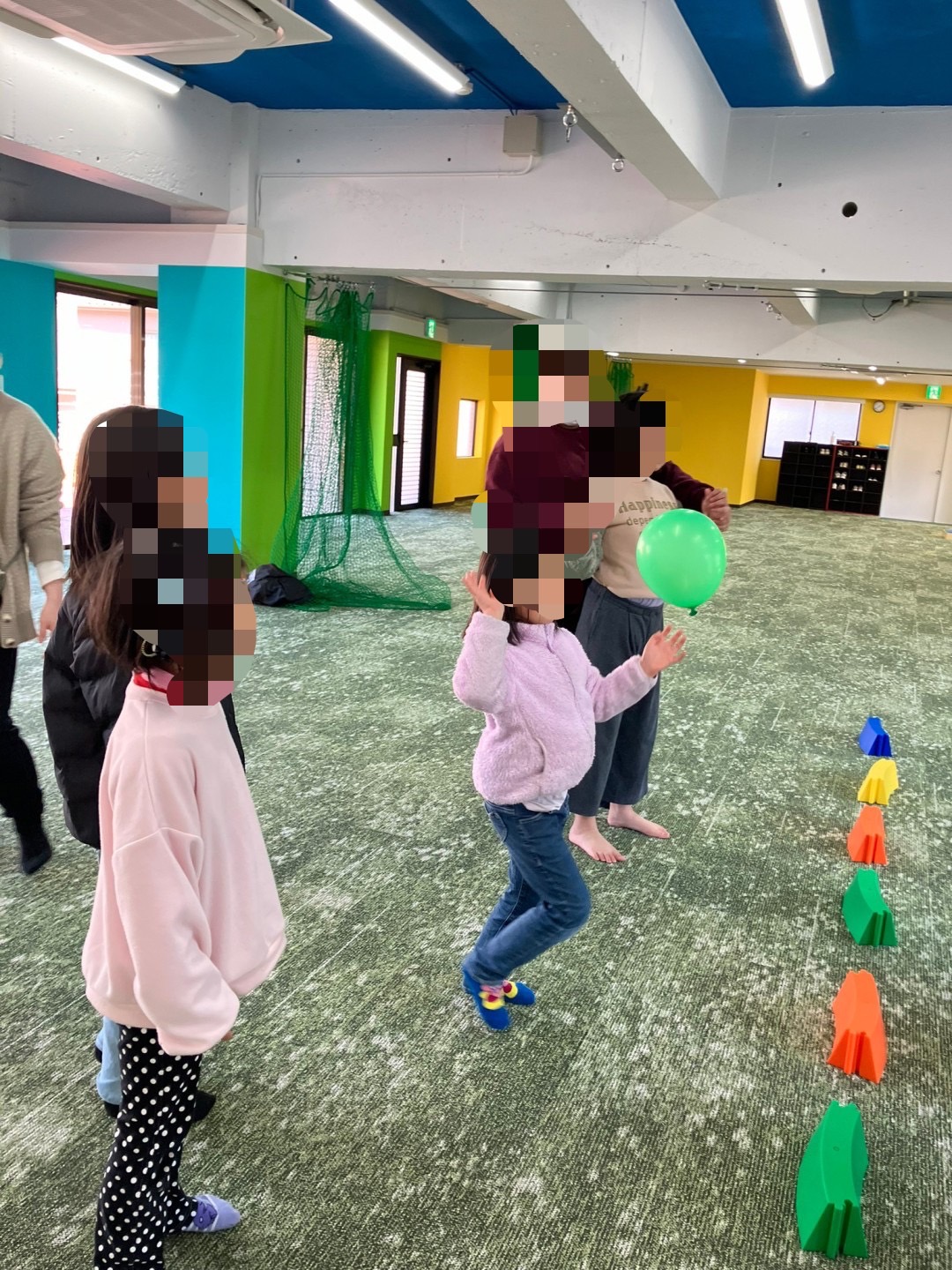 チームのお友達と協力しながら風船を上にあげ、相手チームのコートにかえすことができました😌