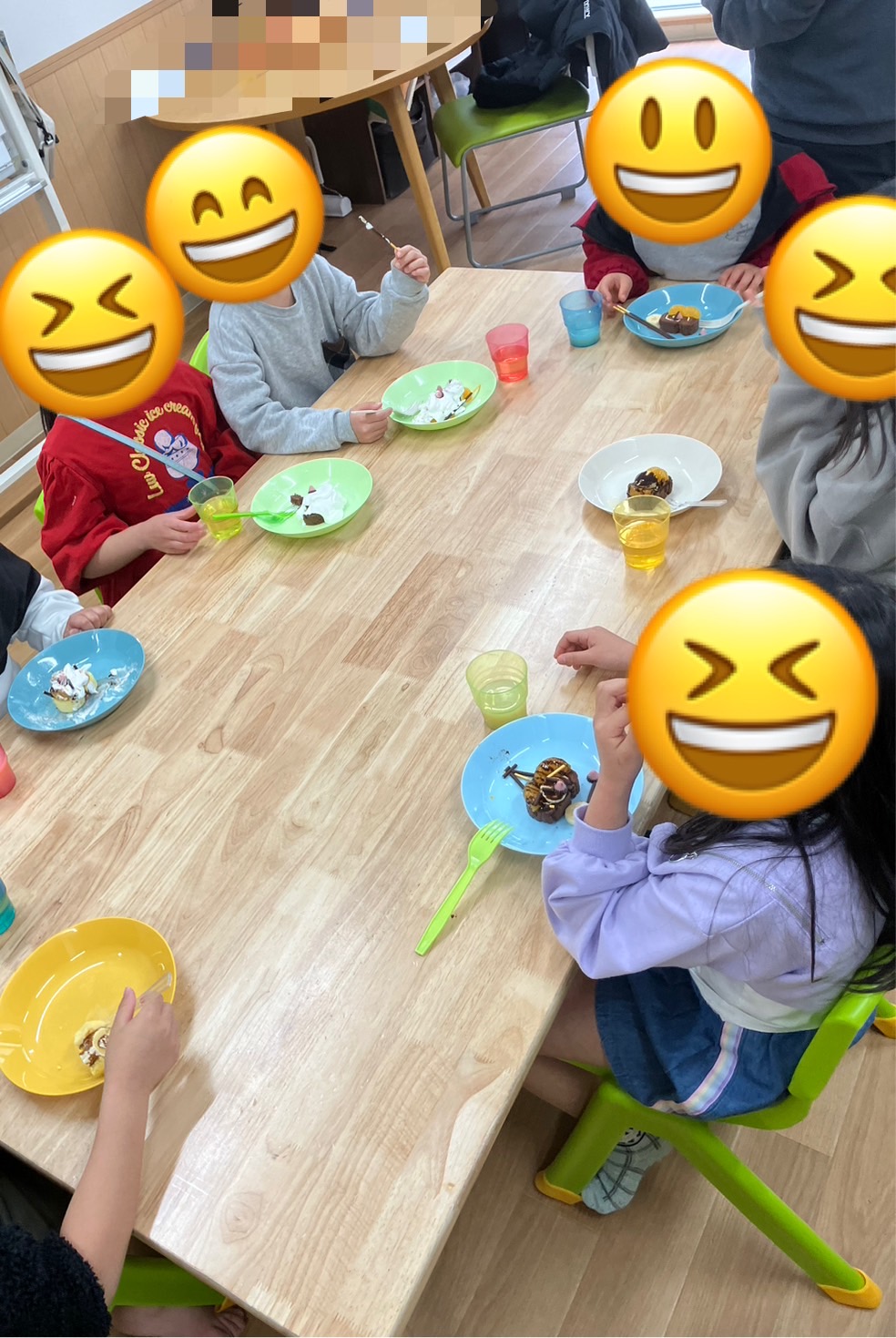 お昼からは、お誕生児のお友達にハッピーバースデーの歌をプレゼントしてお祝いをしたり、自分が好きな果物やお菓子を乗せてケーキ作りを行ったりしています😄